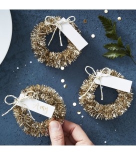 Dress your table in style this Christmas with these glitzy Gold Mini Wreath Place Cards. A great way to ensure your guests are seated in the perfect place around your table!