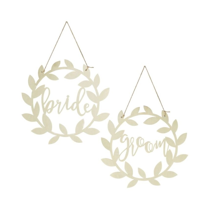 Hang these 'Bride & Groom Wooden Chair Signs' to make your seats for the happy couple extra special! The beautiful wooden finish and vine detailing will look stunning with any theme and add a rustic chic feel - The perfect touch to a dreamy country wedding.
