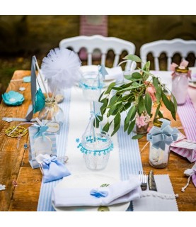 Pastel Blue Striped Linen Table Runner