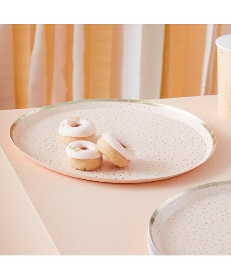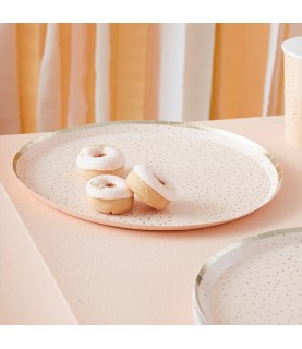 These gorgeous and stylish gold speckle peach party plates will add a subtle and lovely shimmer to your celebration. They will shine beneath your tasty treats for a spectacular party effect! Mix it up with our other tableware and decorations to create the perfect party setup.