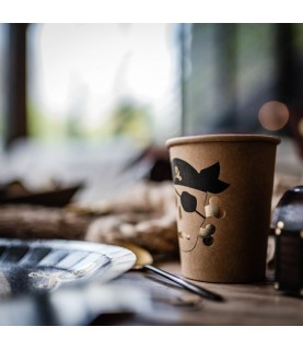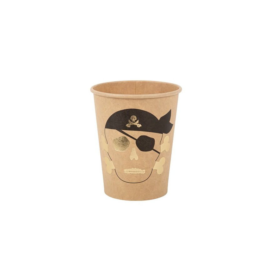 These pirate cups, embellished with shiny gold skull and crossbones with eyepatch, are a brilliant way to serve delicious drinks to little pirates.