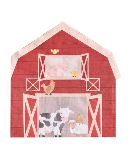 Elevate your farm themed party with these adorable barn shaped napkins. Both eco-friendly and beautifully illustrated, they'll be sure to delight your party guests. Display these barn shaped paper napkins at your farm themed party.