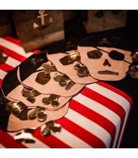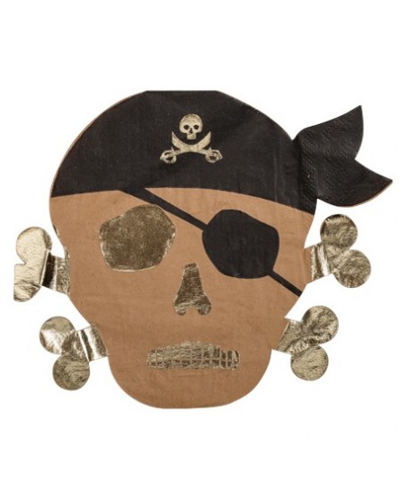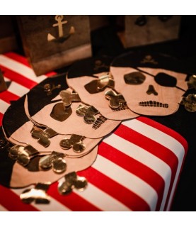 These shiny gold skull and crossbone napkins, complete with swashbuckling eye patches, are just perfect for a feast for your little pirates!
