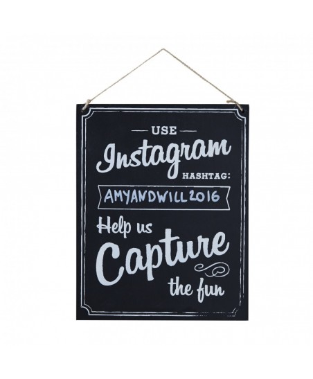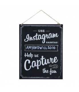 Use this unique chalk board sign to capture your guests pictures and collate them with a Hashtag on Instagram! The unique sign reads "Use Instagram Hashtag:........ Help Us Capture The Fun". Use the space to share your Hashtag with your guests!