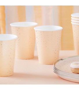 Ces jolis gobelets de couleur pêche maculées de délicates tâches dorées métallisées sont hyper tendance. Il sublimeront et illumineront votre table en délicatesse tout en ajoutant une touche de rose chic et moderne à votre fête!