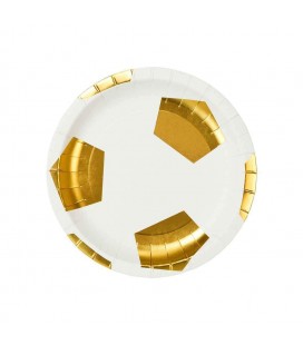 Aucun risque de se prendre un carton rouge avec cette jolie gamme foot dorée! Empilez les sandwichs et les chips sur ces assiettes amusantes en forme de football avec détails en feuille d'or. Ces assiettes sont parfaites pour les anniversaires de tous les champions et fans du ballon rond! Vous serez les champions des fêtes tendances et stylées!