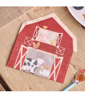 Les animaux de la ferme s'invitent à ta fête avec ces jolies serviettes tendrement illustrées en forme de grange. Réalisez une jolie fête d'anniversaire champêtre avec cette collection. Ferme en folie, fête en folie!