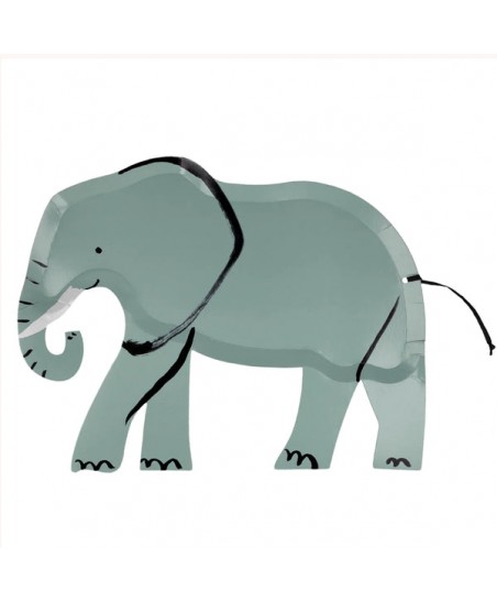 Découvrez la jungle avec ces magnifiques assiettes découpées en forme d'éléphant avec une jolie queue en raphia noir. Ces assiettes seront parfaites pour une fête tendance sur le thème de jungle, cirque ou pour une fête à l'ambiance exotique!