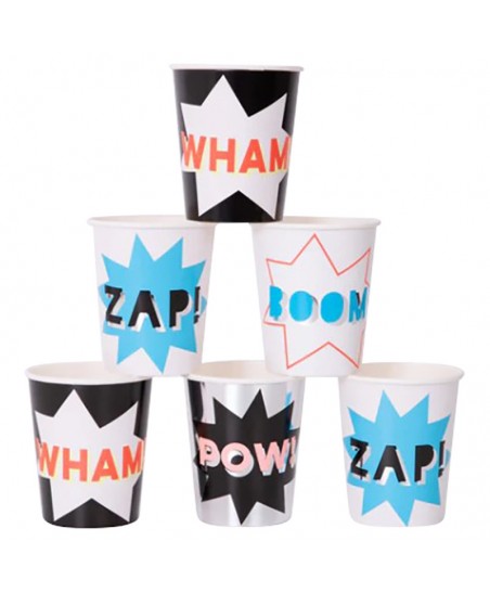 Ces gobelets onomatopées Super Héros signés Meri Meri feront fureur lors de votre fête d'anniversaire. Ils complèteront à merveille votre déco pour un effet de folie digne du super héros le plus cool!