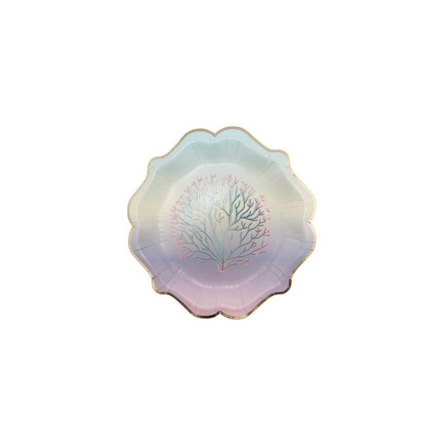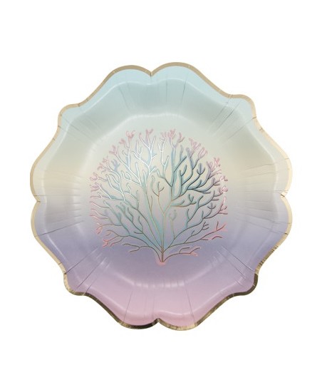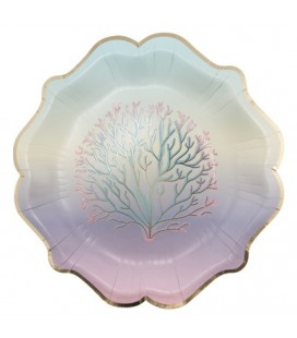 Ces magnifiques assiettes sont ornées d'une bordure dorée et de coraux sur un doux fond dégradé pastel. Elles apporteront une touche magique et festive à votre table.