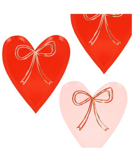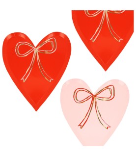 Ces assiettes en forme de coeur sont ornées d'un noeud doré pour une touche moderne et romantique. La combinaison du rouge et du rose plaira à coup sûr à vos invités et apportera à votre table une touche super girly!