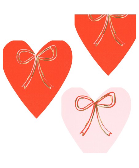 Ces serviettes en forme de coeur sont ornées d'un noeud doré pour une touche moderne et romantique. La combinaison du rouge et du rose plaira à coup sûr à vos invités et apportera à votre table une touche super girly!