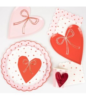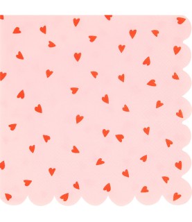 Ces serviettes à la bordure festonnées sont ornées de petits coeurs rouges ont un petit look romantique vintage. La combinaison du rouge et du rose plaira à coup sûr à vos invités et apportera à votre table une touche super girly!