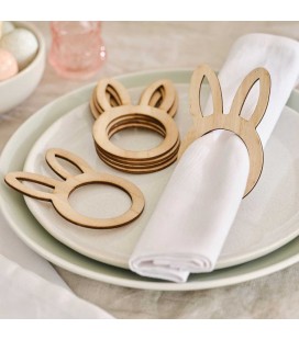 Des ronds de serviettes stylés et adorables en forme d'oreilles de lapins pour embellir et ajouter une touche de fantaisie à votre table de Pâques. Ils raviront petits et grand! Ronds en bois pour un bel effet.
