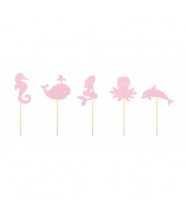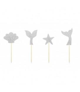 Chaque paquet contient 9 pics en carton pailleté aux motifs de la mer. Insérez-les dans vos desserts et vos petits sandwichs afin de décorer votre table et de mettre vos invités dans l'ambiance tout en mangeant!