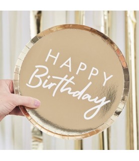 Ces jolies assiettes dorées métallisées avec inscription Happy Birthday sont hyper tendance. Elles sublimeront et illumineront votre table tout en ajoutant une touche chic et moderne à votre fête d'anniversaire!