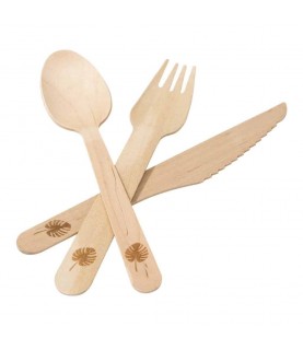 Lot de 18 pièces de couverts en bois. Ces couverts sont parfaits pour décorer un candy-bar ou une jolie sweet table et ajouter une touche rétro à vos fêtes et gourmandises ! Faites la fête avec style et de manière éco-responsable avec ces couverts jetables 100% biodégradable et eco-friendly.