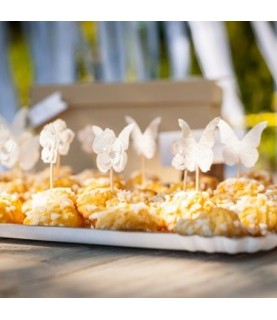 Ajoutez une touche de poésie à votre déco grâce à ces jolis papillons en lin ficelle sur pic. Ces toppers en forme de papillon sublimeront votre table et orneront délicatement votre buffet de fête.