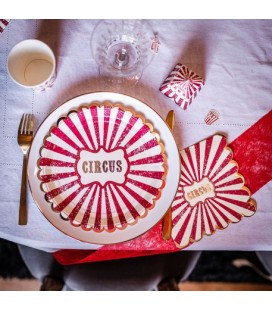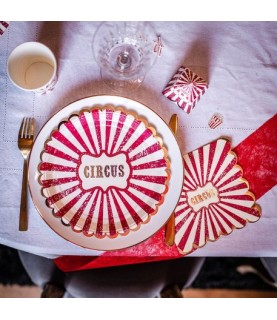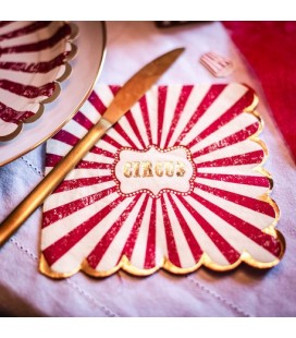 De jolies serviettes qui rappellent la piste aux étoiles d'un grand chapiteau. Elles seront parfaites pour créer une ambiance et une déco vintage de cirque et de fête foraine. Un thème classique et intemporel pour tous les enfants, petits et grands, où fous rires sont garantis d'être au rendez-vous!