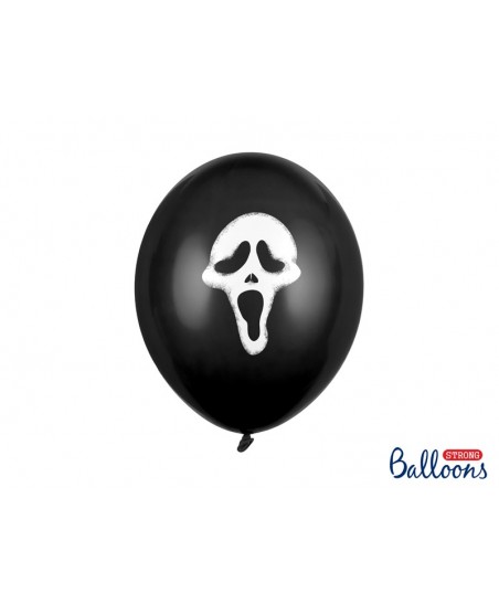Ce ballon en latex noir est imprimé recto-verso d'un Scream blanc. Ballon parfait pour impressionner vos invités le soir d'Halloween ! Vous pouvez le gonfler à l'air et le disposer au sol ou dans une guirlande de ballons, vous pouvez également le gonfler à l'hélium pour qu'il flotte.