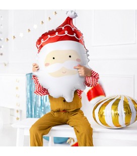 Ballon en aluminium brillant en forme de Père Noël, mélange de couleurs, taille environ 50 x 70 cm. Gonflage à air ou hélium.