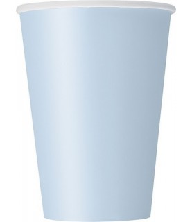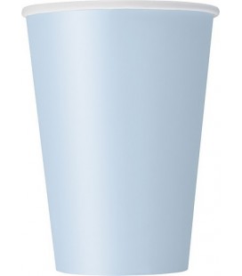 Chaque paquet comprend 14 gobelets en carton de couleur bleu ciel.