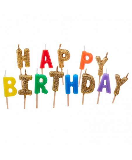 Ajoutez quelque chose de spécial à votre prochain gâteau d'anniversaire avec ces joyeuses bougies Happy Birthday multicolores et à paillettes dorées ! Parfait pour les personnes de tous âges!