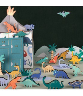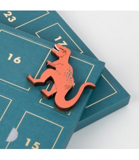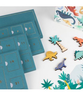 Ce magnifique calendrier de l'Avent sous le thème des dinosaures signé Meri Meri se présente dans une jolie valise. Ouvrez-la pour y révéler les 24 cases numérotées dans lesquelles se trouvent des dinosaures et des pièces de feuillage en bois gravé. Les amoureux des dinosaures vont adorer ce calendrier de l'Avent. Il est parfait pour le jeu imaginatif pendant la saison des fêtes et même toute l'année. Une fois Noël passé, votre enfant pourra continuer de jouer avec. Pratique à transporter dans sa valise, ce calendrier de l'Avent va émerveiller votre enfant qui ne voudra plus le quitter!