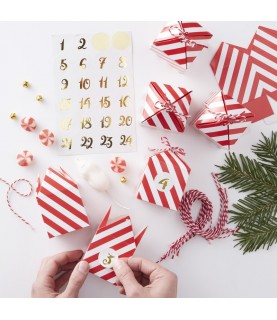 Pour un compte à rebours passionnant jusqu'à Noël, montez simplement ces boîtes à rayures comme des bonbons canne à sucre rouges et blanches et remplissez-les de bonbons et de petites friandises. Pourriez-vous résister à les ouvrir toutes en même temps?
