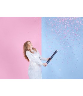 Les gender reveal parties débarquent en Europe pour le plus grand bonheur des futurs parents! Utilisez ce canon à confettis XXL lors d'un baby shower ou de votre fête de révélation du sexe de votre bébé.