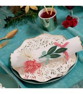 Hazel Gardiner, une talentueuse créatrice florale basée à Londres, a collaboré pour créer ces merveilleux pétards. Ils ont des fleurs en papier de soie roses, rouges et jaunes et des bords festonnés ornés de feuille d'or, et seront absolument incroyables lors d'occasions festives. Chaque pétard contient une blague, un chapeau en carton doré et une broche en bois avec des détails en papier alu doré.