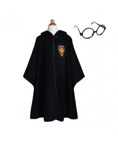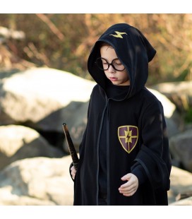 Toutes nos félicitations! Vous avez été admis à l'école de sorcellerie! N'oubliez pas de vous munir de votre cape pour vous glisser dans la peau d'un sorcier! La conception de haute qualité et faite avec un tissu noir doux, cette cape se drape confortablement sur le corps. Cette robe noire à capuche est ornée d'un écusson et d'un éclair sur la capuche, et de fausses lunettes complètent le look!