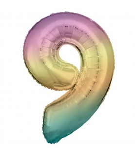 Ballon Aluminium Arc-en-Ciel Pastel Chiffre 9