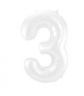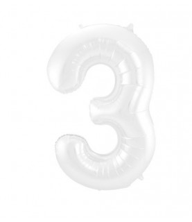 Ballon aluminium "Super Shape" blanc mat qui décorera votre salle tout en indiquant avec style le chiffre 3!