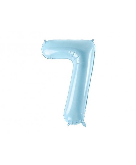Ballon Mylar "Super Shape" bleu pastel qui décorera votre salle tout en indiquant avec style le chiffre 7!