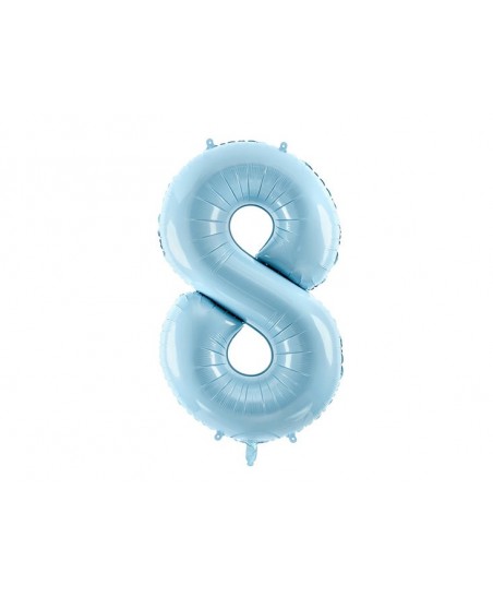 Ballon Mylar "Super Shape" bleu pastel qui décorera votre salle tout en indiquant avec style le chiffre 8!