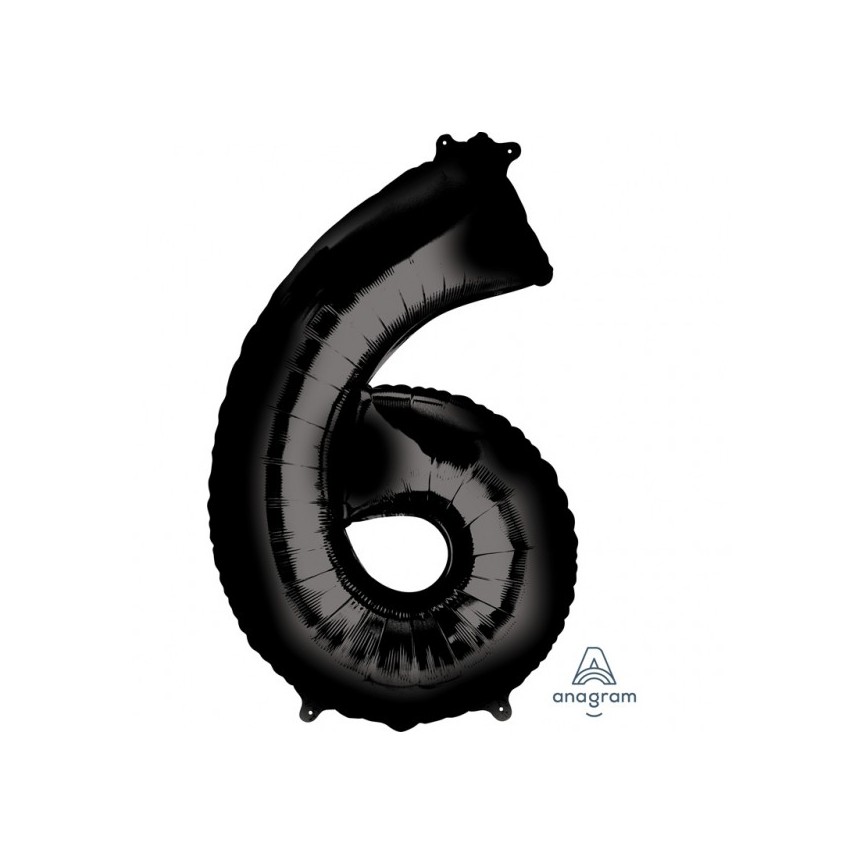 Ballon Mylar "Super Shape" noir métallisé qui décorera votre salle tout en indiquant avec style le chiffre 6!