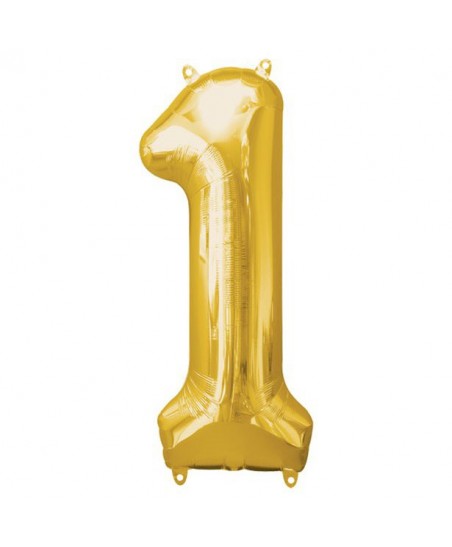 Ballon Mylar "Super Shape" métallisé doré qui décorera votre salle tout en indiquant avec style le chiffre 1!