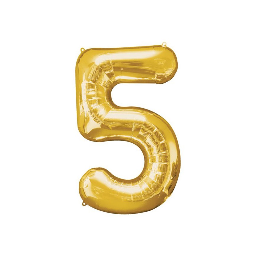 Ballon Mylar "Super Shape" métallisé doré qui décorera votre salle tout en indiquant avec style le chiffre 5!