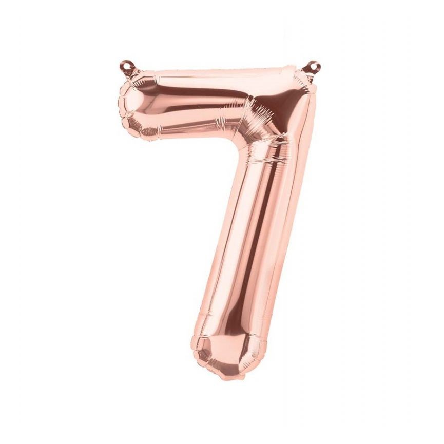 Ballon Mylar "Super Shape" rose gold métallisé qui décorera votre salle tout en indiquant avec style le chiffre 7!
