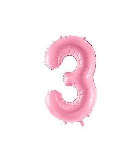 Ballon Mylar "Super Shape" rose pastel qui décorera votre salle tout en indiquant avec style le chiffre 3!