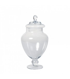 Cette bonbonnière en verre mesure 14cm de diamètre x 32 cm de hauteur
