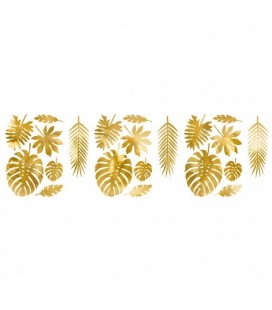 21 Feuilles Tropicales Dorées en Papier