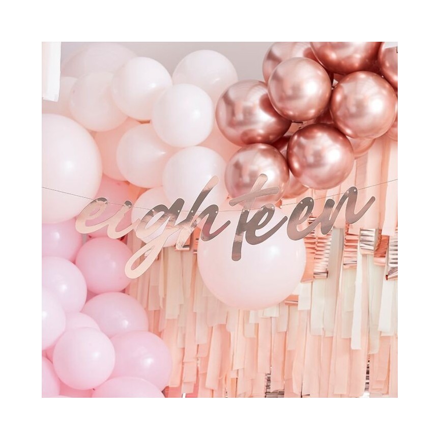 Cette jolie guirlande avec inscription "eighteen" métallisée sublimera et illuminera avec délicatesse votre déco d'anniversaire tout en ajoutant une touche chic et moderne à votre fête!