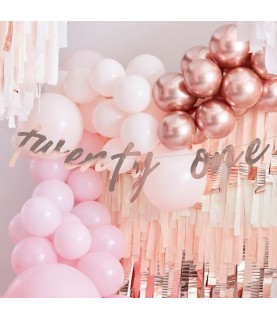 Cette jolie guirlande avec inscription "twenty One" métallisée sublimera et illuminera avec délicatesse votre déco d'anniversaire tout en ajoutant une touche chic et moderne à votre fête!