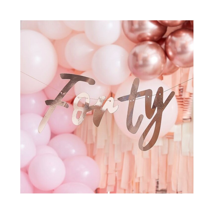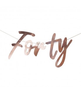 Cette jolie guirlande avec inscription "Forty" métallisée sublimera et illuminera avec délicatesse votre déco d'anniversaire tout en ajoutant une touche chic et moderne à votre fête!