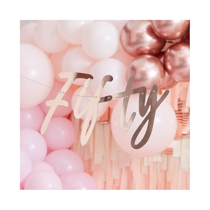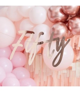 Cette jolie guirlande avec inscription "Fifty" métallisée sublimera et illuminera avec délicatesse votre déco d'anniversaire tout en ajoutant une touche chic et moderne à votre fête!