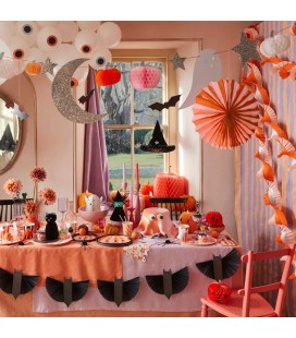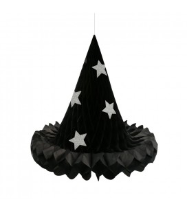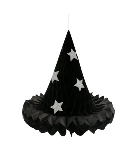 Ces décorations suspendues en forme de chapeaux de sorcière en nid d'abeille rendront vos célébrations d'Halloween vraiment époustouflantes! Les étoiles pailletées ajouteront une touche scintillante et magqiue à votre déco. Accrochez et faites flotter ces chapeaux dans votre salon, au-dessus de votre table d'Halloween, dans votre véranda ou votre jardin pour un effet des plus fabuleux!