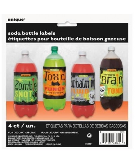 Habillez vos boissons avec ces 4 étiquettes adhésives avec des noms effrayants comme Toxic Punch et Brain Tonic. Collez-les directement sur vos bouteilles de 2 litres. Avec leurs couleurs néon et leurs designs spooky! Avec leurs désigns rétro et leurs noms terrifiants ils apporteront style et effroi à votre fête!! Bois si tu oses! Paquets de 4 étiquettes adhésives.