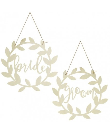 Les décorations de chaises des mariés sont la grande tendance des mariages. Ces jolis panneaux de mariage en bois découpé avec l’inscription “bride & Groom” qui veut dire “mariée & marié” évoquent le romantisme et le rustique chic. Suspendez-les aux dos des chaises pour désigner l'emplacement extra spécial des nouveaux mariés tout en y ajoutant une touche poétique.